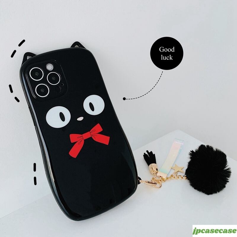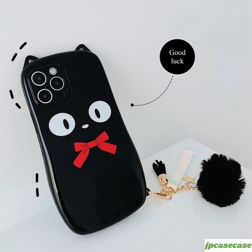 黒いネコちゃん iPhone 12Pro 11Pro XS XR 8ケース ボンボン付き 大人かわいい 人気スマホケース 立体的 韓国ファッション♡