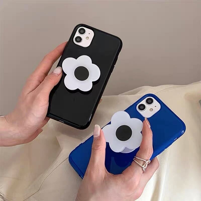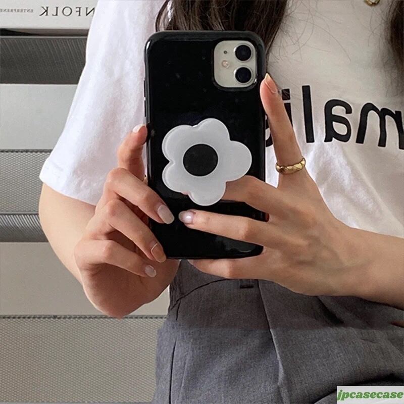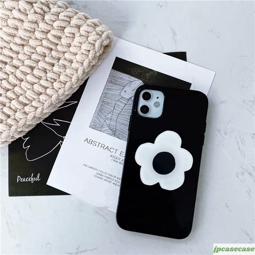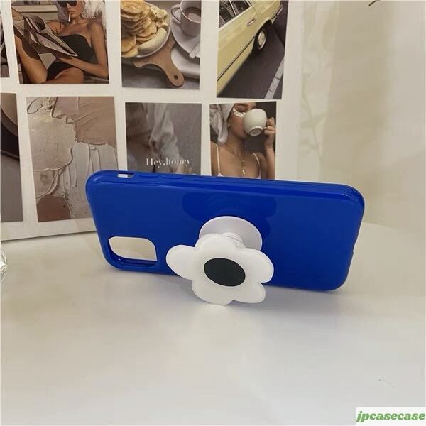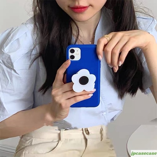 花柄スマホグリップ付き iPhoneケース 無地 親友とお揃い iPhone 12Pro 12 11Pro 11 XS XR SE2 8 7Plusカバー 大人かわいい 韓国ファッション プチプラ♪