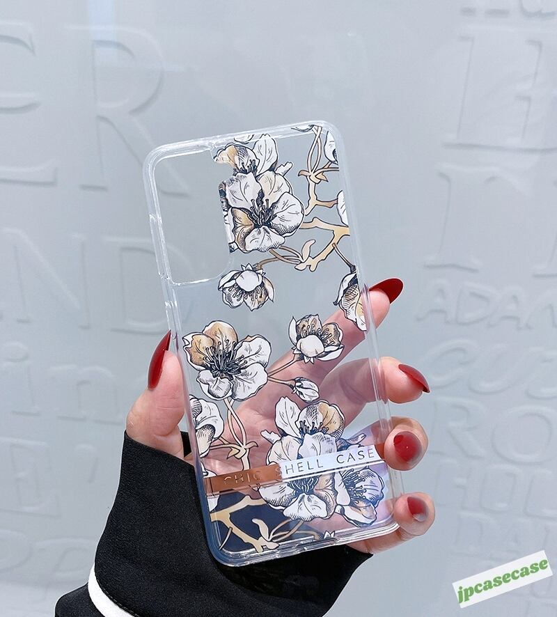 Galaxy S20/S20+/S21/S21+/S21Ultraケース クリア フラワー 新作 植物プリント Samsung ギャラクシーケース 大人かわいい 女子力UP♪