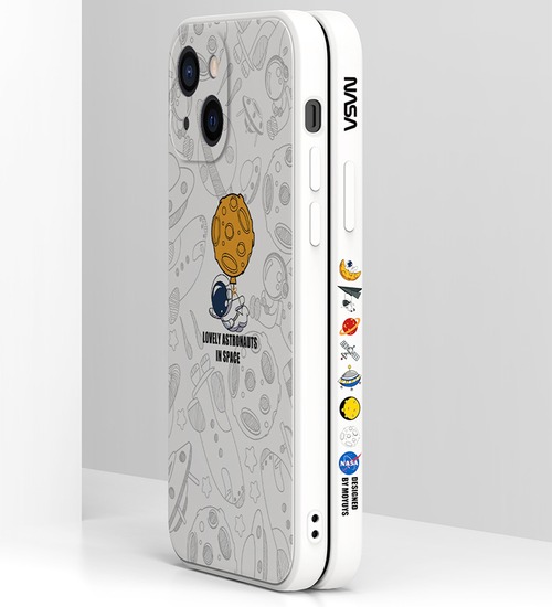 可愛い星と宇宙飛行士プリントが描かれたiPhoneケースです◎