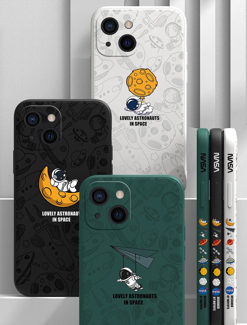 iPhone13ケース シリコン iPhone 13Proケース 宇宙飛行士 iPhone13 ProMaxケース iPhone13 Miniケース ホワイト グリーン ブラック 三色 かわいいプリント 大人気 税込♡