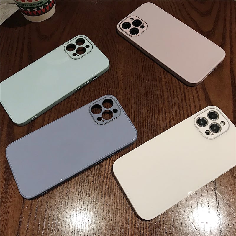 送料無料 iPhone13ケース 強化ガラス iPhone13 Pro ケース 光沢 iPhone12 Pro/11ケース 無地 シンプル iPhoneXS/XR/8Plusケース メンズ レディース ペア・親友とお揃い ハードケース アイフォンケース 全4色 人気おすすめ♪