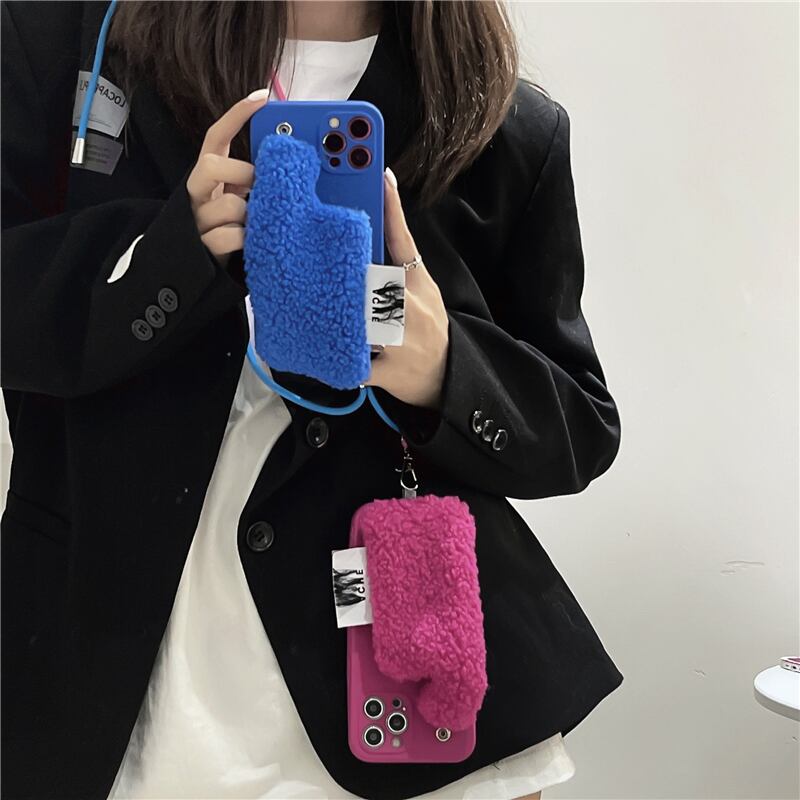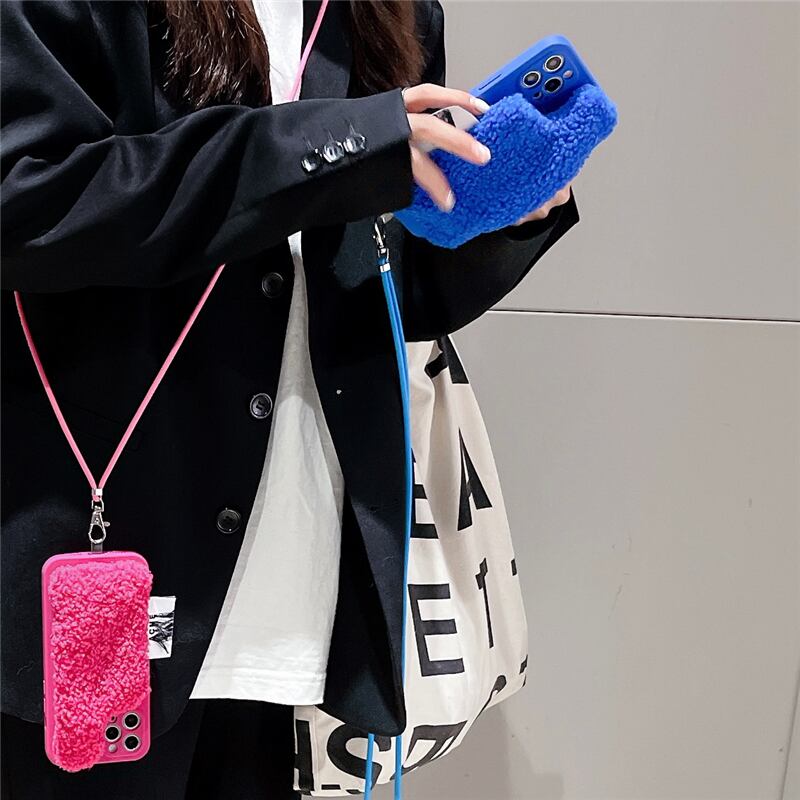 ポケット付き iPhone13 13Pro 13ProMaxケース 手持ち・ショルダー 2WAY アイフォン12/11/XS/8plusカバー 防寒 iPhone保護カバー 暖かい ふわふわ ポケット取り外し可能 可愛い 女子 冬のアクセサリー 個性的 全4色 オススメ☆