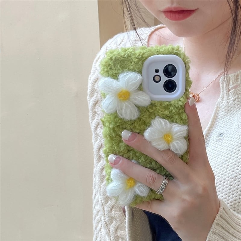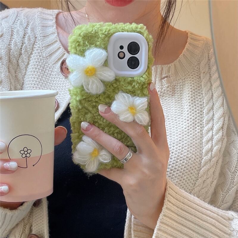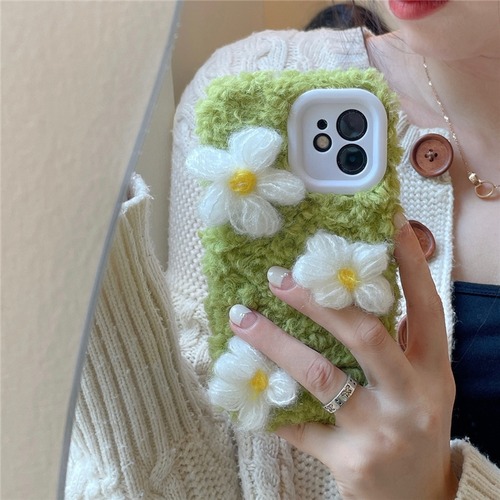 iPhone13 Proケース 花柄 シンプル ふわふわ アイフォン13/12 Pro/12/11ProMax/11Proカバー トレンド 韓国ファッション iPhoneXS/XR/8Plusカバー グリーン フラワー 可愛い お洒落 スマホケース 冬にもおしゃれに!