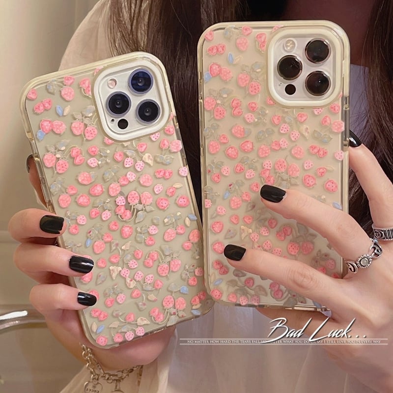 iPhone13/13Pro/13ProMaxケース イチゴ シック アイフォン12Pro 12 11 XS SE2 8 7Plusカバー 可愛い スマホカバー 韓国ファッション iPhone保護ケース ピンク エレガント 優しい