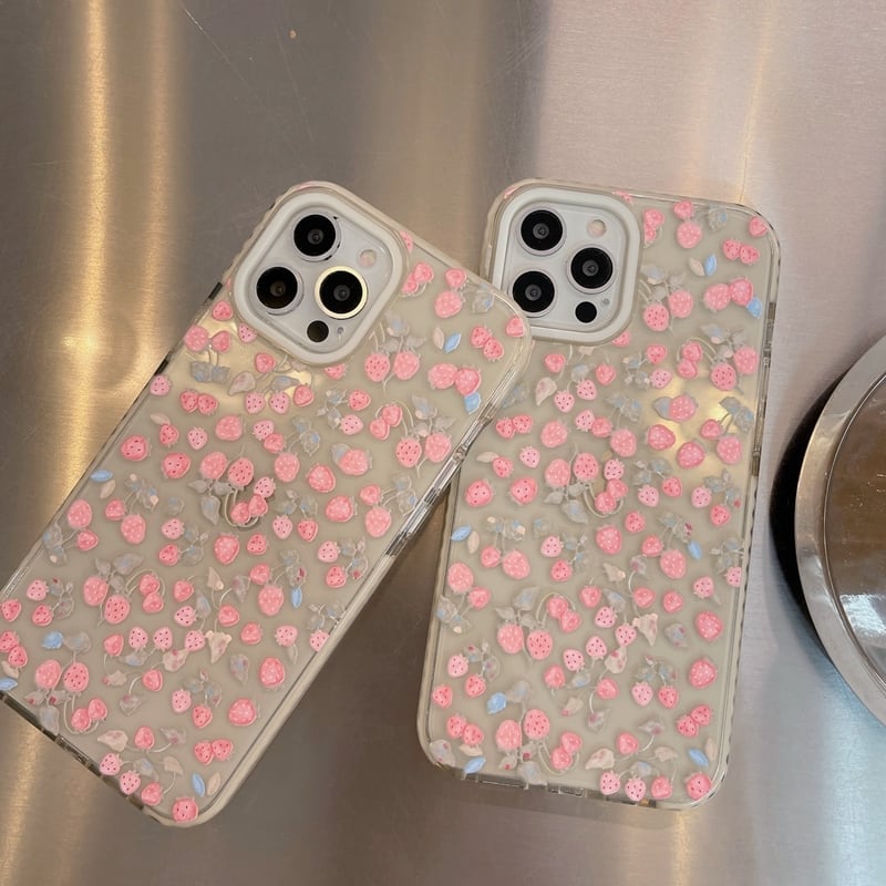 ケースはいっぱいに敷き詰められたイチゴのデザインがお洒落◎