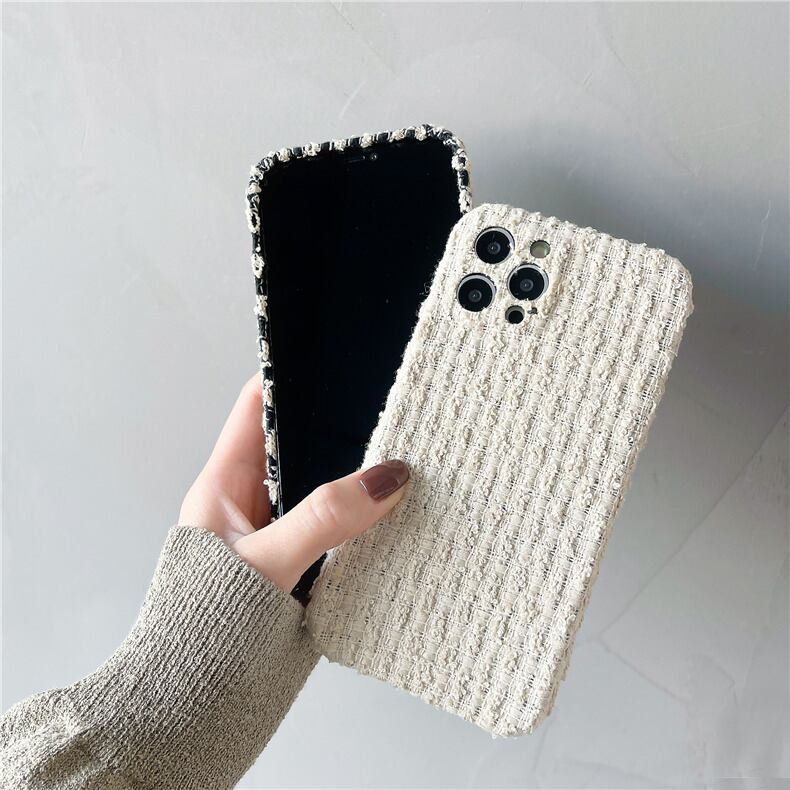 秋冬用 iPhone13 Pro Maxケース ファブリック iPhone13 Proカバー かわいい iPhone12 Pro Max/11 Pro/XS/XR/8Plus/7ケース 韓国芸能人愛用 エレガント 人気スマホケース 三色 親友とお揃い オシャレ