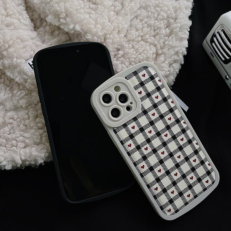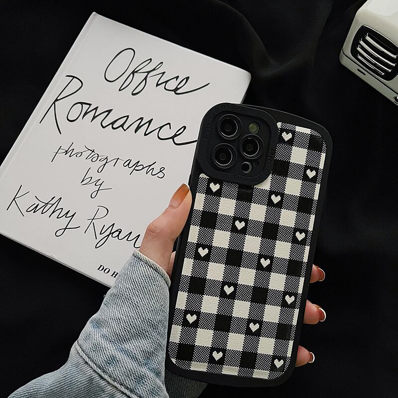 iPhone 8Plus XS 11 12Pro 13ProMaxケース ハート 黒&グレー かわいい 韓国ファッション プチプラ