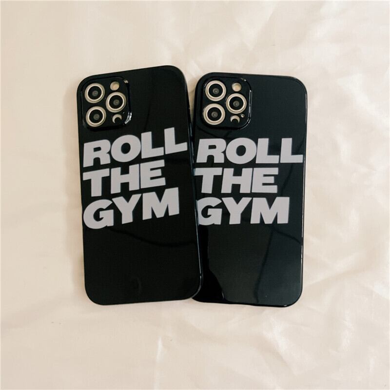 iPhone 13ProMax 12Pro 11 XS XR 8Plusケース ROLL THE GYM 黒♪