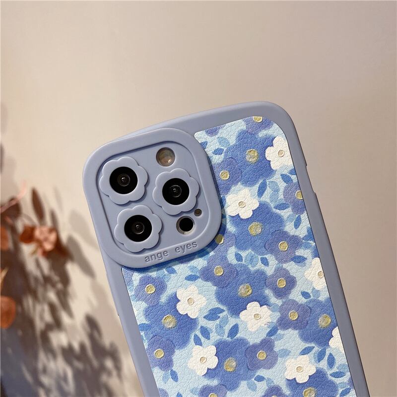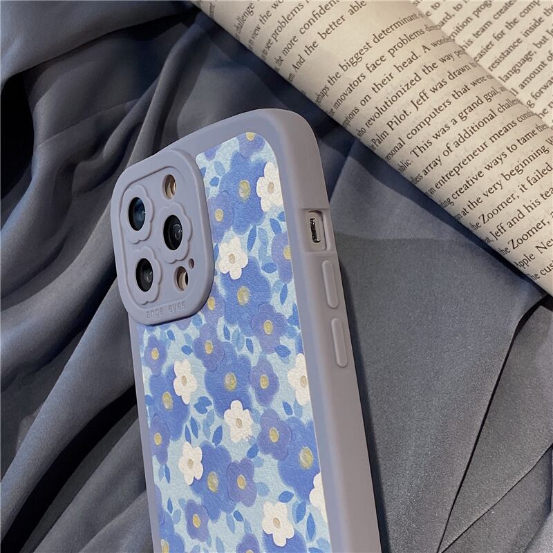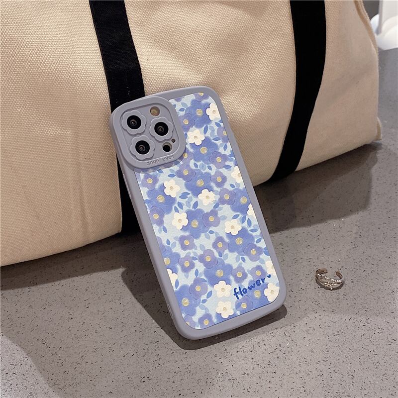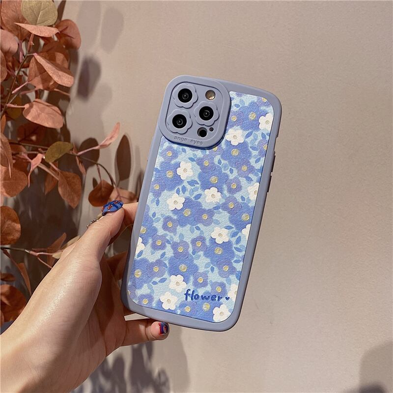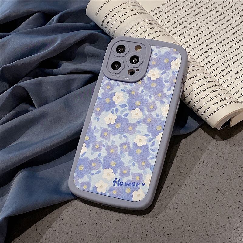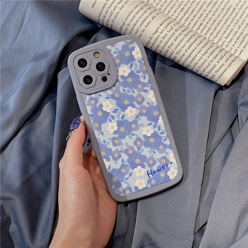 【Flower】 iPhoneケース 13ProMax 12Pro 11 XS XR 8Plusカバー ブルー系 かわいい スマホケース アイフォンカバー 女子力UP♪