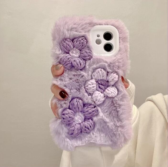 パープル系 iPhone11 12Pro 13ProMaxカバー ふわふわ フラワー♪ スマホケース・アイフォンカバー 人気商品