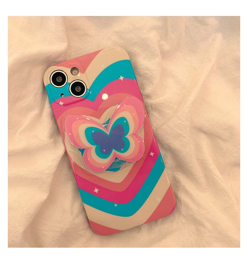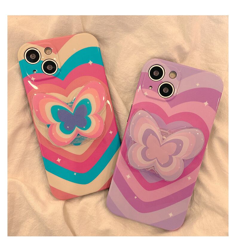 お持ちのiPhoneをもっと華やかに変身させるカラフル蝶々グリップ付きアイフォンケースです。