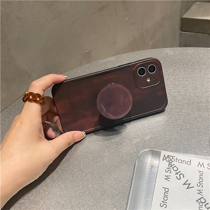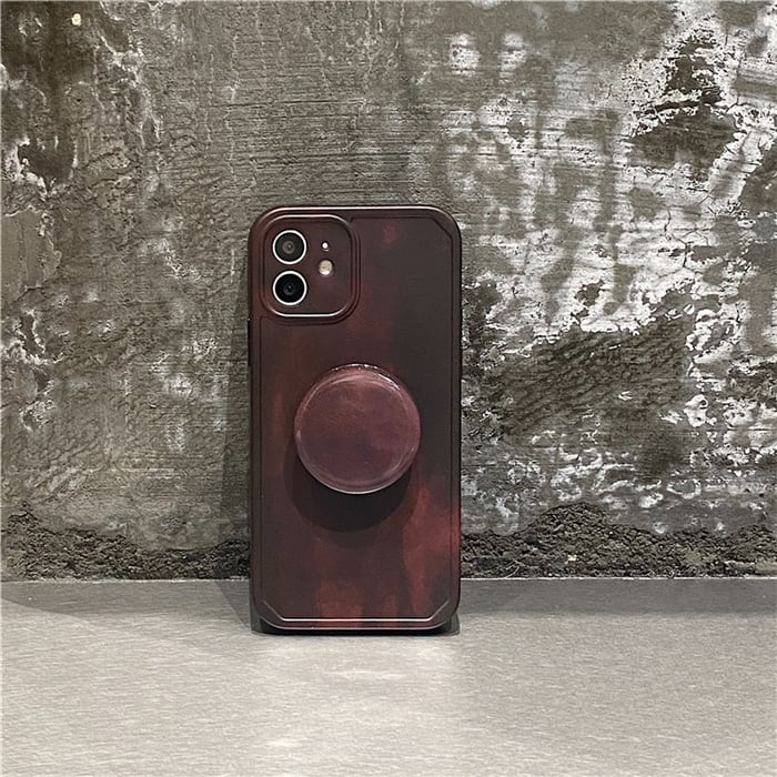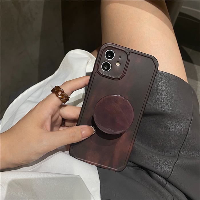 【シック】 アイフォン13 12カバー 大人 グリップ付き ウッド色 ユニセックス iPhoneケース 送料無料