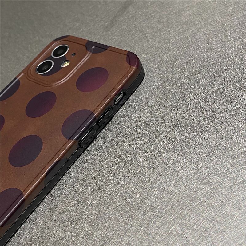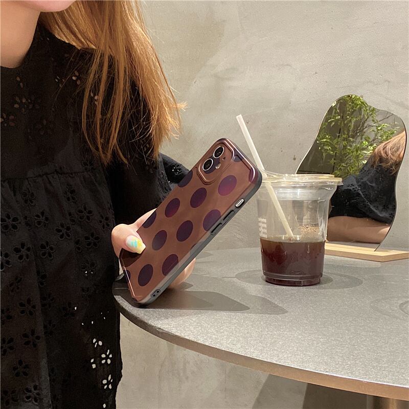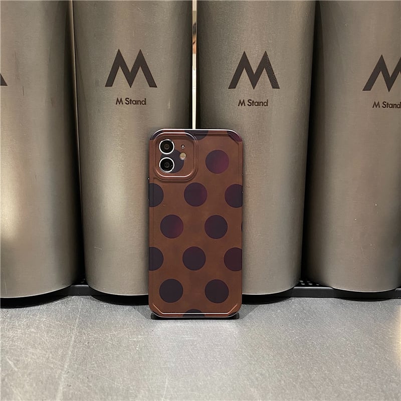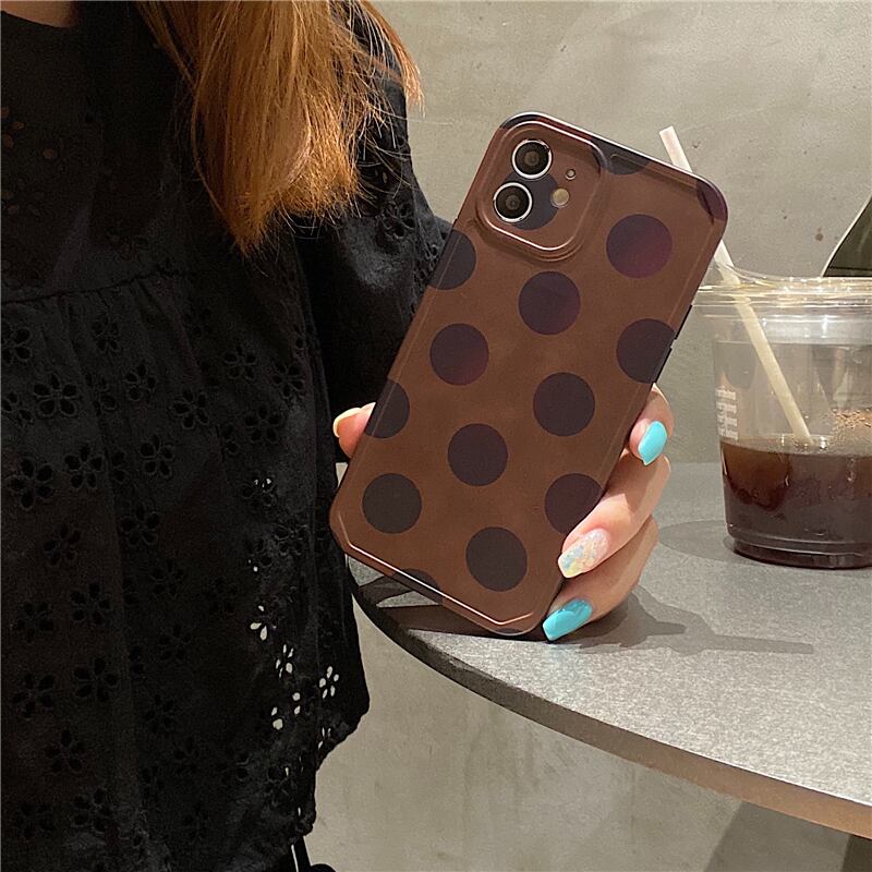 ♥ドット柄 iPhone11 12ケース 水玉模様 大人 ブラウン レディース アイフォン12proカバー 韓国 携帯ケース♥