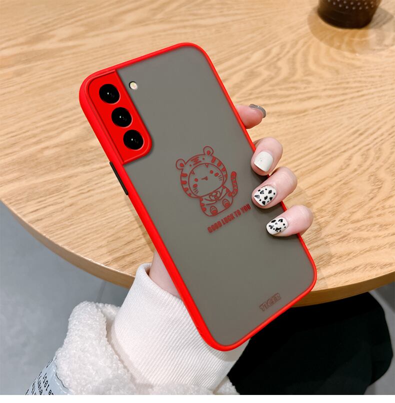 ■マット Galaxy S21/S21+/S21 Ultraケース ラッキー 虎柄 保護 ギャラクシーカバー アクリル樹脂 指紋防止 サラサラ