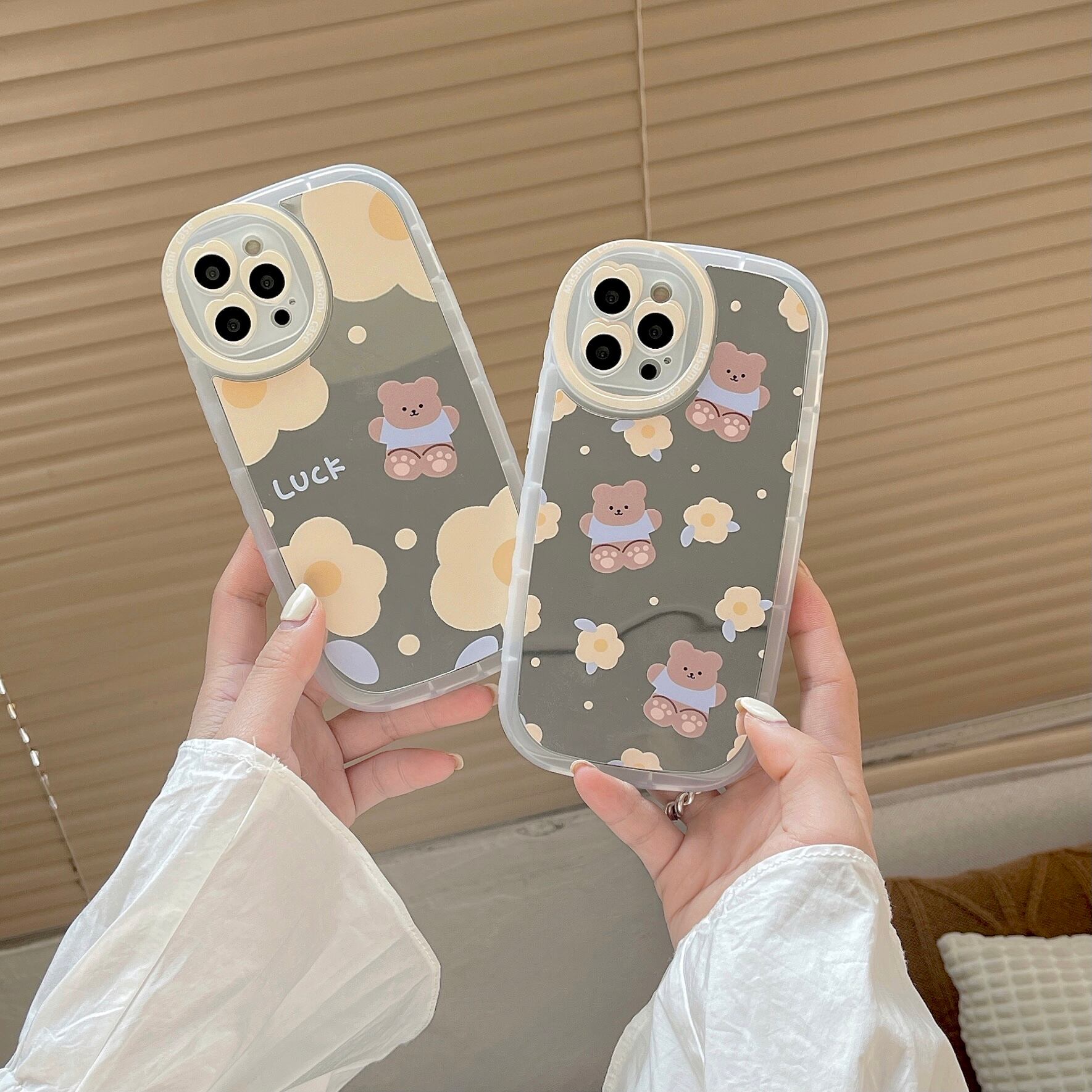 ★鏡面 iPhone13 12 11 Pro Maxケース 花柄 熊 可愛い 耐衝撃 アイフォンXSカバー くまちゃん かわいい おしゃれ