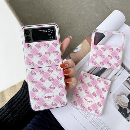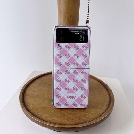 Galaxy Z Flip3 5Gカバー スウィート チェリー お洒落チェック柄 ギャラクシーフリップ3カバー チェック柄 さくらんぼ 可愛い