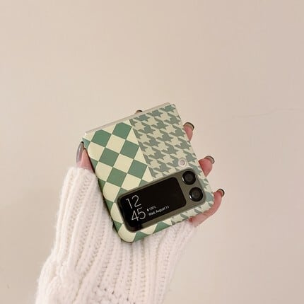 Galaxy Z Flip3 5Gケース ◆千鳥格子 チュック柄 上品 和む 緑色 ギャラクシーフリップ3保護ケース 親近感 折り畳み 高級感
