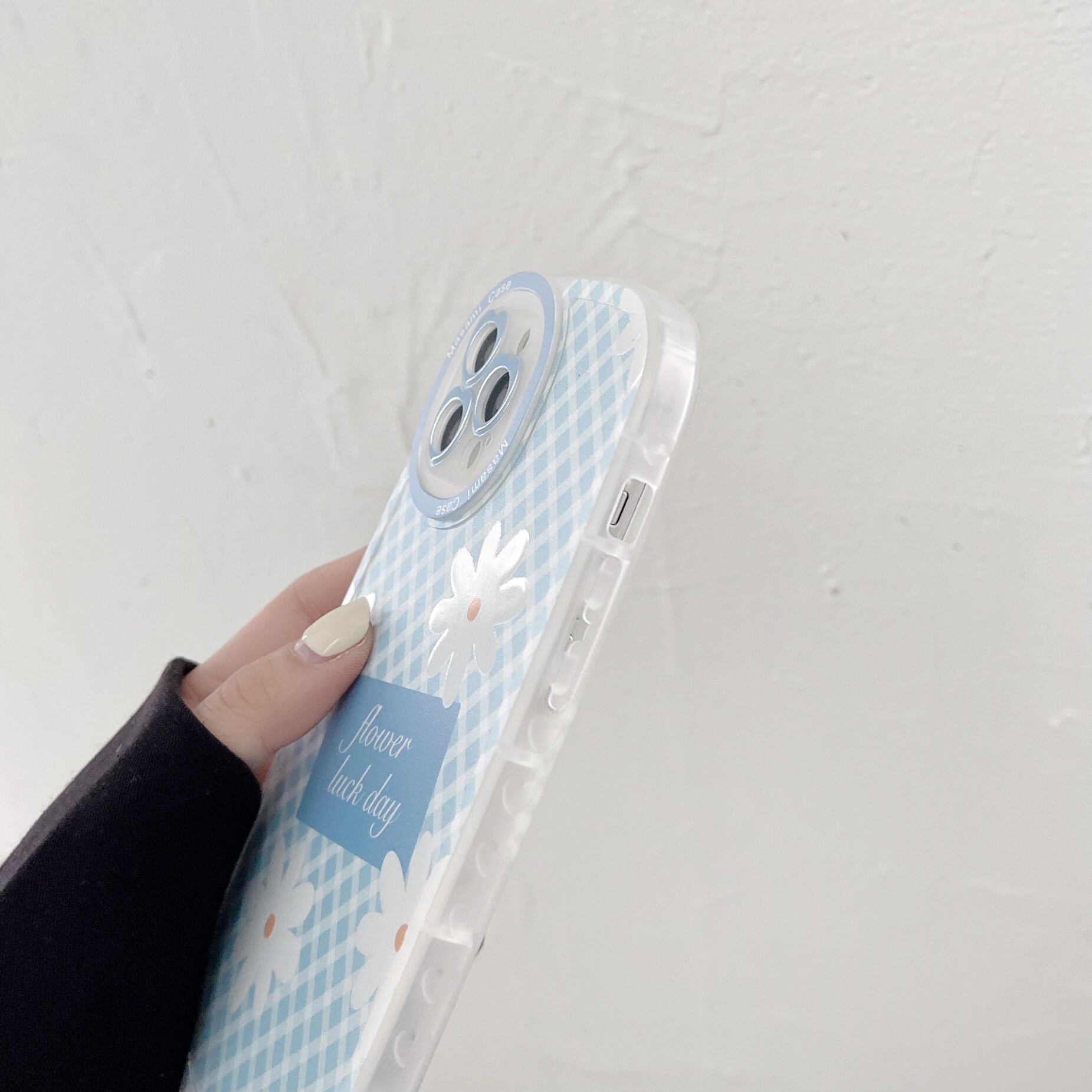 iPhone13 12 11 Pro Maxケース 英文字 花柄 爽やか ソフトカバー アイフォンXR おしゃれケースブルー チェック柄 夏向け!