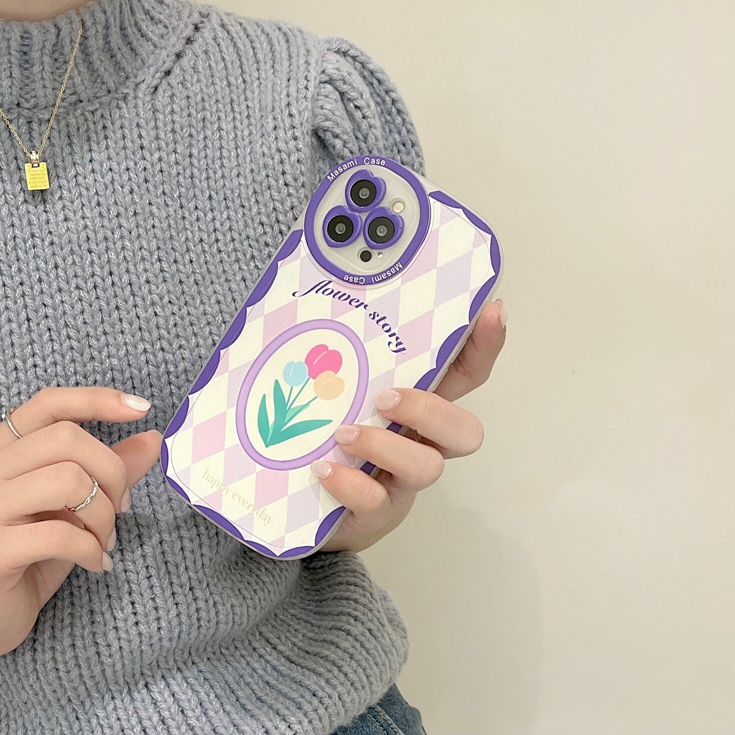iPhone13 12 11 Pro Maxケース 花柄 ポップソケット スタンド付 アイフォンXRケース ソフト 滑り止め 上品 パープル♥