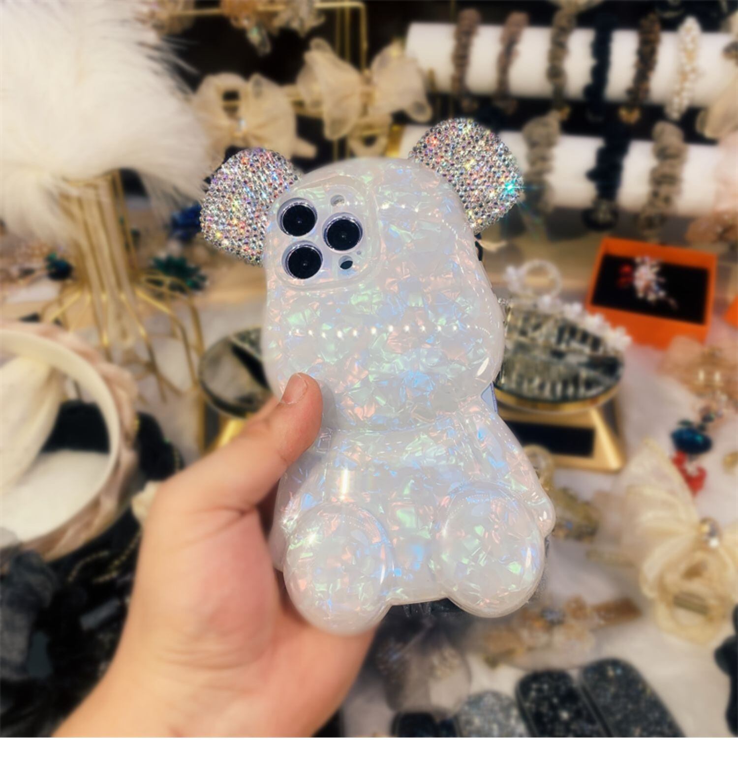 大きな耳はラインストーンがびっしり敷き詰められ、キラキラと眩い光を反射します。