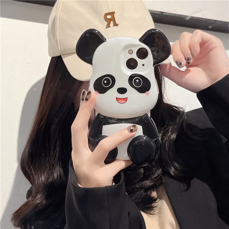 iPhone13 Pro Max 12 11ケース パンダ お洒落 可愛い ビッグ熊♪ アイフォンXSカバー 個性的 立体型 カジュアルスタイル♥