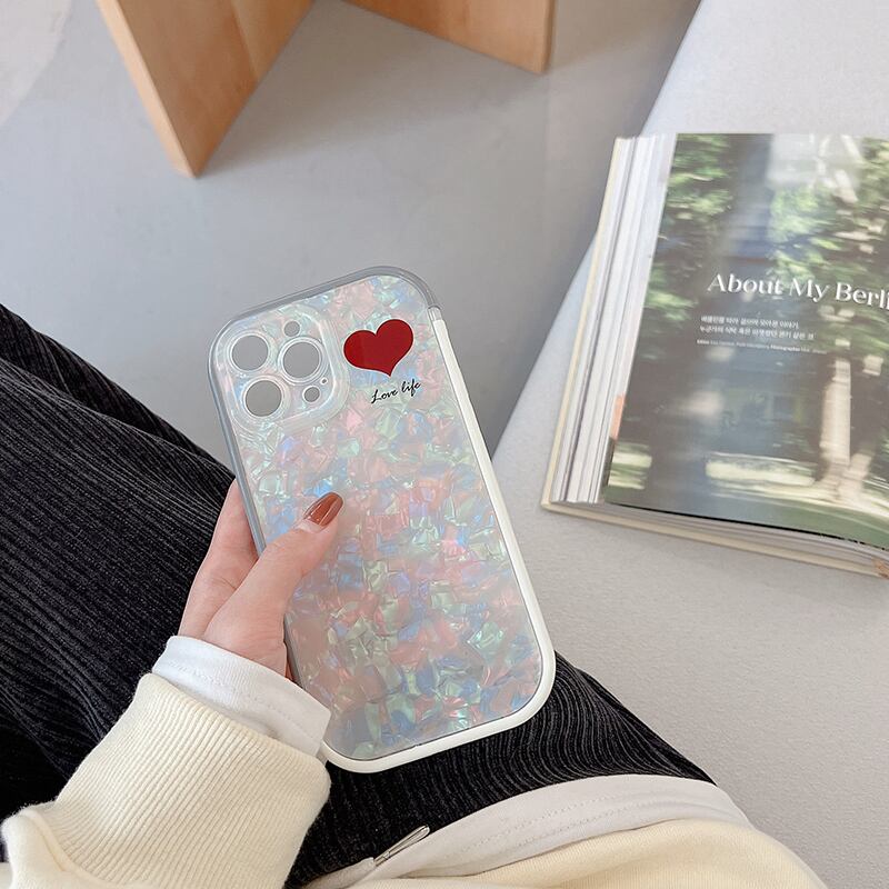 iPhone13 Pro Max 12 11ケース ハート 真珠層柄 半透明 耐衝撃◎ アイフォン12プロカバー カラフル 貝殻模様 ホログラム パール キラキラ★