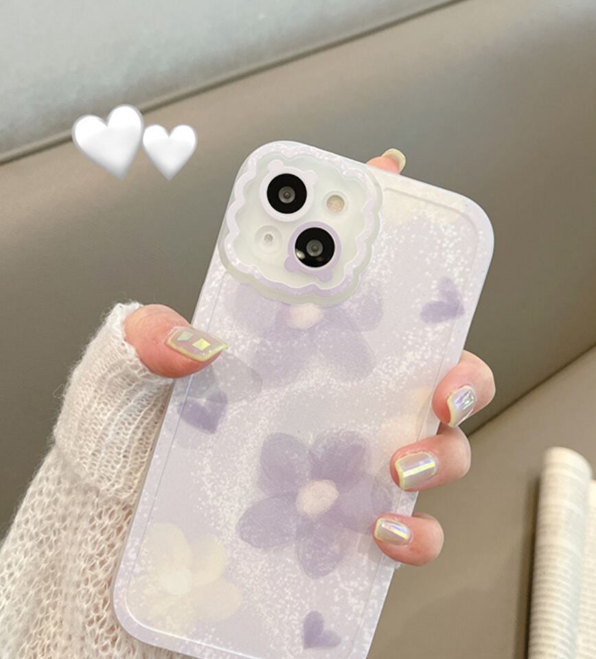 iPhone13 Pro Max 12 11ケース 花柄 上品 パープル ソケット◎ アイフォン12プロカバー エレガント 大人可愛い スタンド付き◎