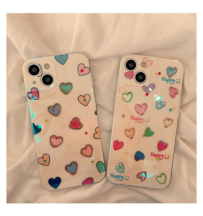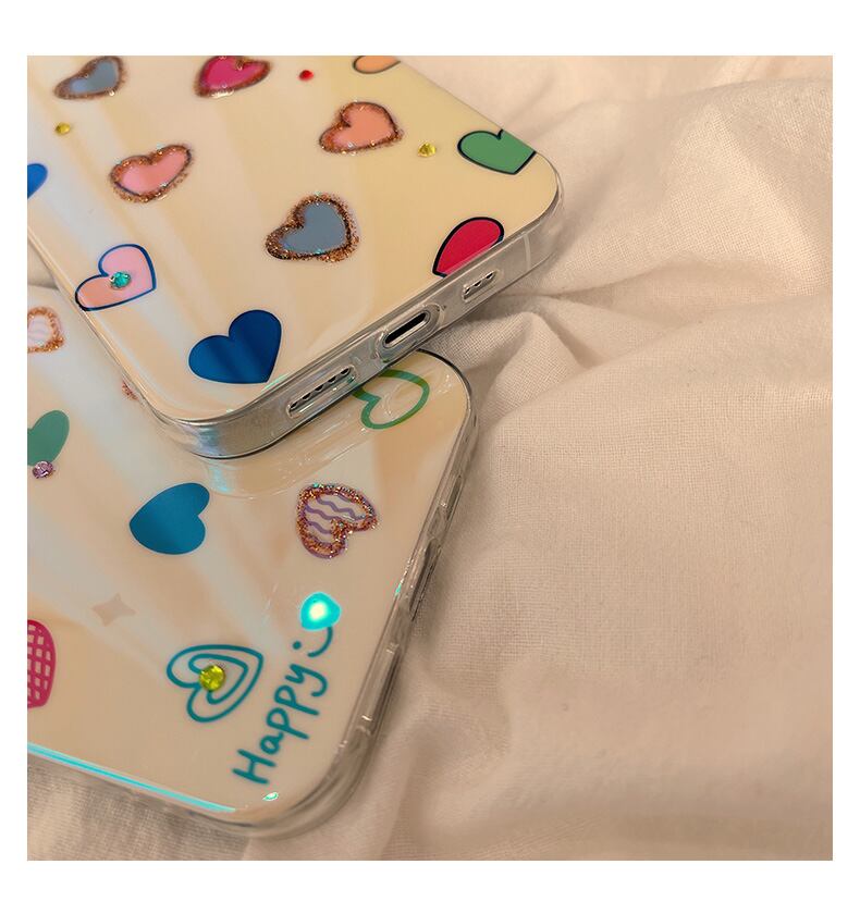 iPhone14 Pro Max/13/12ケース ハート デコ 光沢 ★キラキラ★ アイフォン14プロカバー 光沢 カラフル ラブリーなコーデにぴったり♪