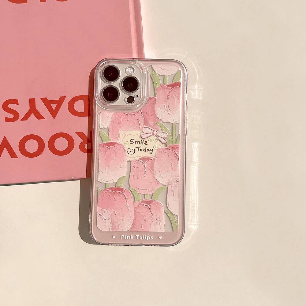 iPhone14 Pro Max/13/12ケース チューリップ 花柄 透明 可愛い● アイフォン13プロカバー 手描き風 芸術的 シリコン素材 手馴染みやすい!