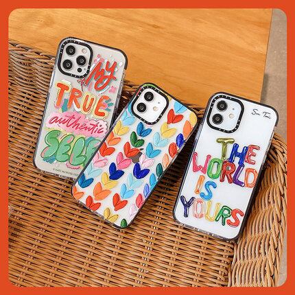 iPhone14 Pro Max 13 12 落書き 英文字 欧米 イラスト カラフル アイフォン14プロカバー フレーム保護 ハート 楽しデザイン◎