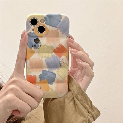 iPhone14Pro Max/13/12ケース 芸術 カラフル 顔料 かわいい 花柄 アイフォン14プロケース お洒落 波形状 スタイリッシュ 持ちやすい!