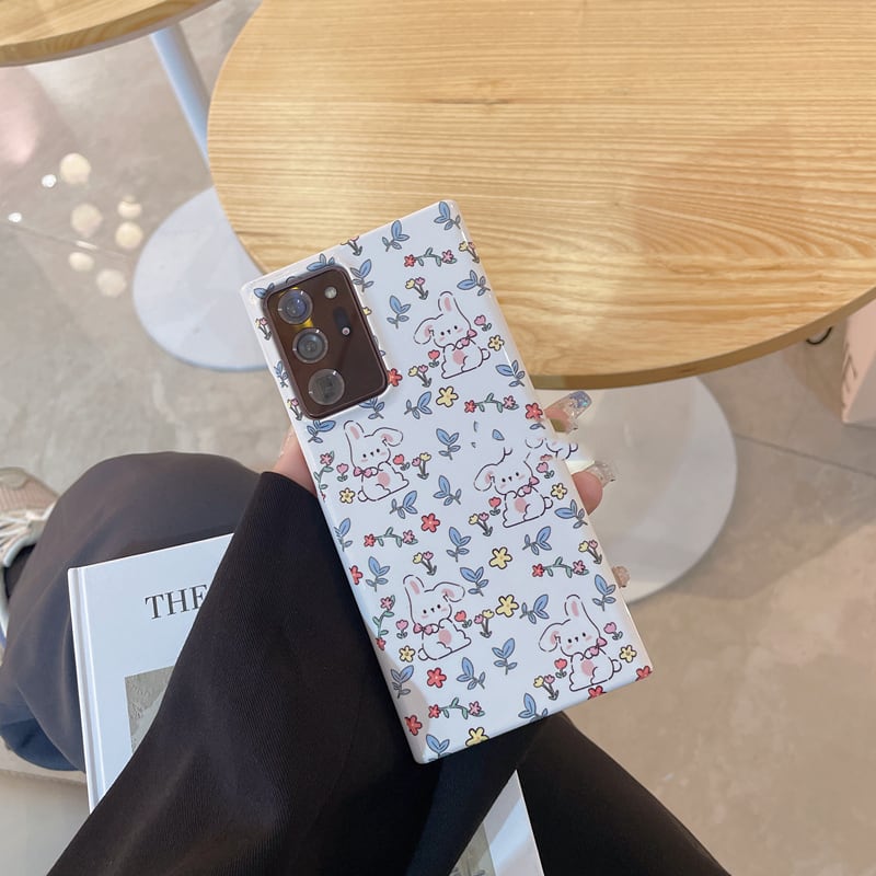 Galaxy S22 Ultra/S21+ケース うさぎ柄 可愛い ハード 兎 花柄● ギャラクシーS21ケース お洒落 光沢 軽量&薄型仕様◎