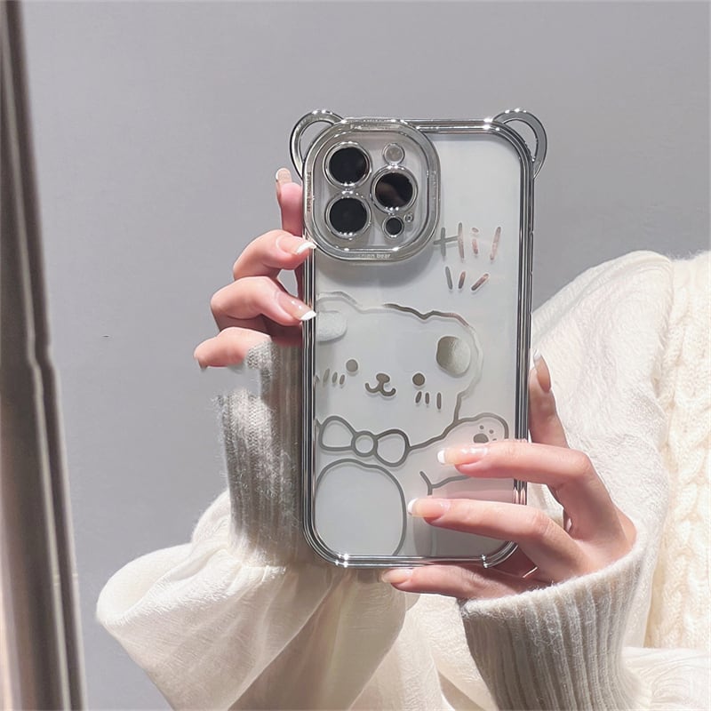 Say Hi!してくれる可愛い透明のクマ柄iPhoneケースです。