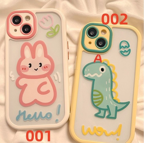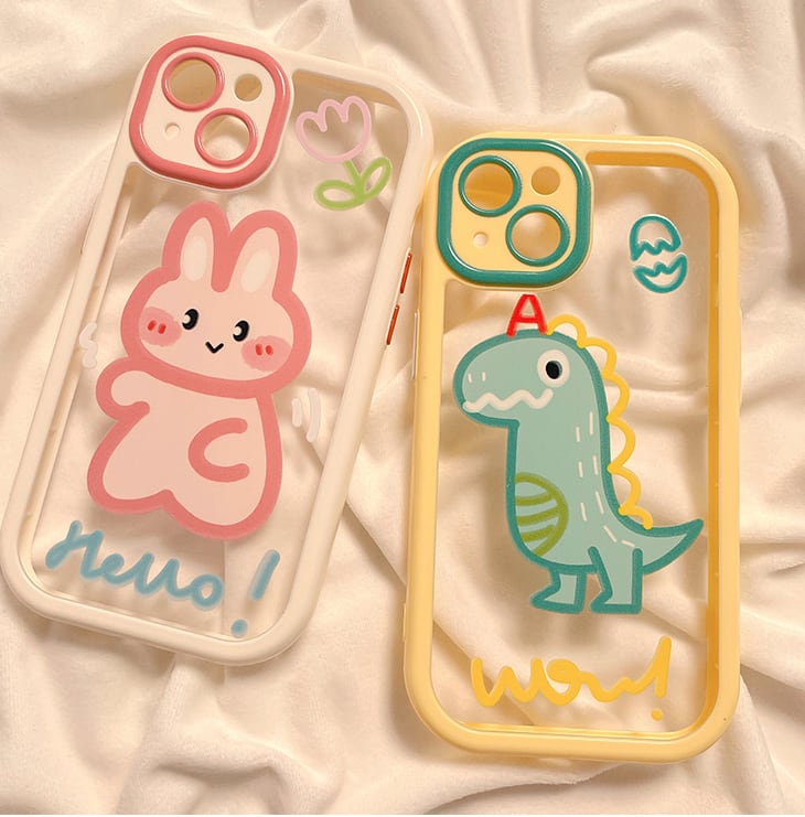 iPhone14 Pro Max/13/12ケース 恐竜 兎柄 お絵描き風 ペア向け◎ アイフォン14プロケース アニマル 透明 ほっこり癒される◎