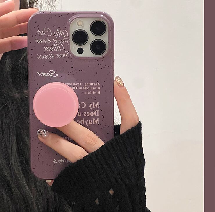 iPhone14 Pro Max/13/12ケース 英文字 お洒落 グリップ付き★ アイフォン13プロカバー パープル オトナ可愛い スタンド便利◎