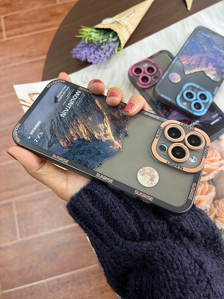 iPhone13 Pro Max 12 11ケース 月 雪山柄 風景 黄昏 クリア★ アイフォン13プロケース 神秘的 夕方 グリップ感 手になじみやすい◎