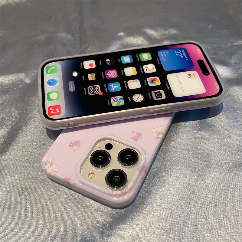iPhone14 Pro Max/13/12ケース 兎柄 可愛い 花柄 光沢 高級感◎ アイフォン13ケース 上品 淡いピンク うさぎ 薄くてスリム★