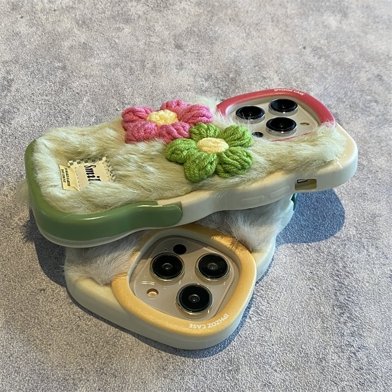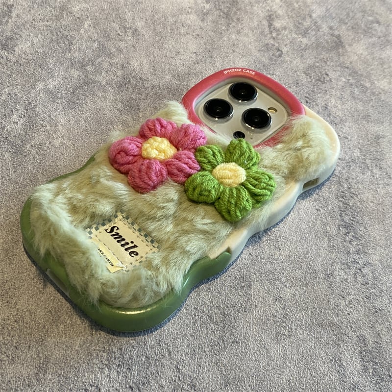 iPhone14 Pro Max/13/12ケース ふわふわ フェイクファー 暖かい アイフォン13プロケース スタンド付き 可愛い お花 癒される◎