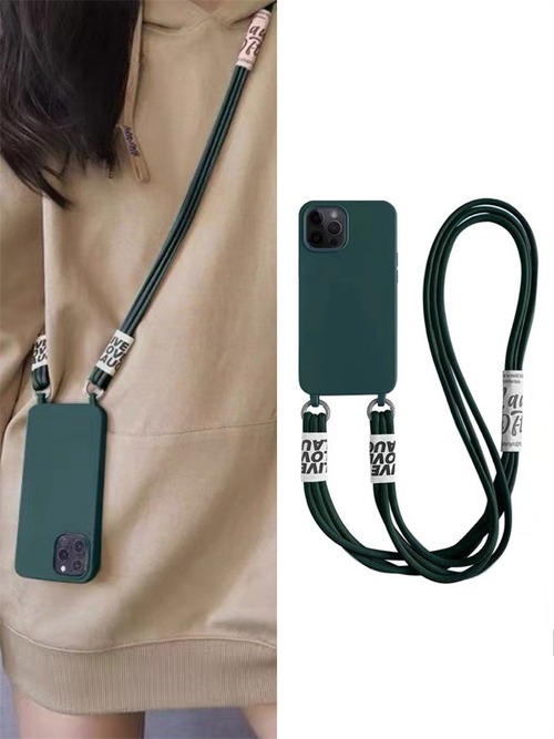 iPhone14 Pro Max/13/12ケース クロムグリーン 肩掛け お洒落♪ アイフォン13プロカバー 気品 緑色 ショルダーストラップ付き 便利◎