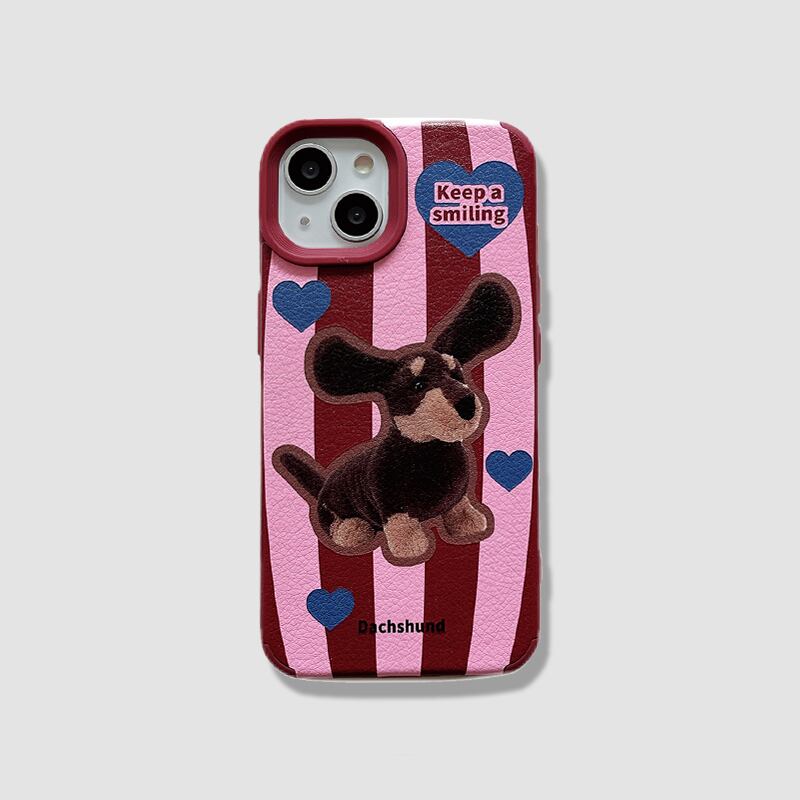 可愛い犬柄のデザインで、ケースの素材は柔かいシリコンとフェイクレザーを組み合わせたハイブリット仕様♪