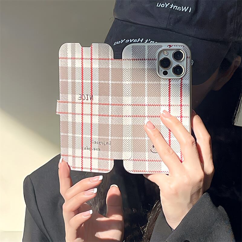 iPhone14Pro Max/13/12ケース チェック柄 オトナっぽい かわいい アイフォン13ケース スリム 手帳型 スタイリッシュ ファッションアイテム◎