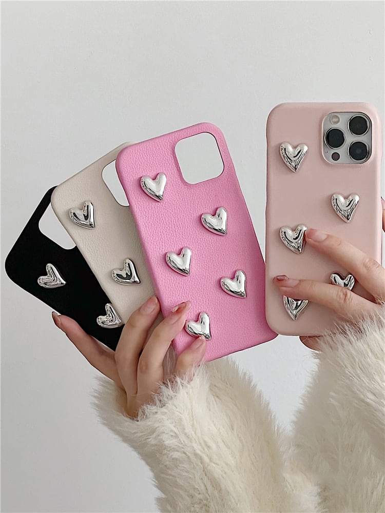 iPhone14 ProMax 13 12ケース レザー調 ハート スタッズ 可愛い アイフォン14プロケース 上品 メタリック感 大人女性 デコレーション★