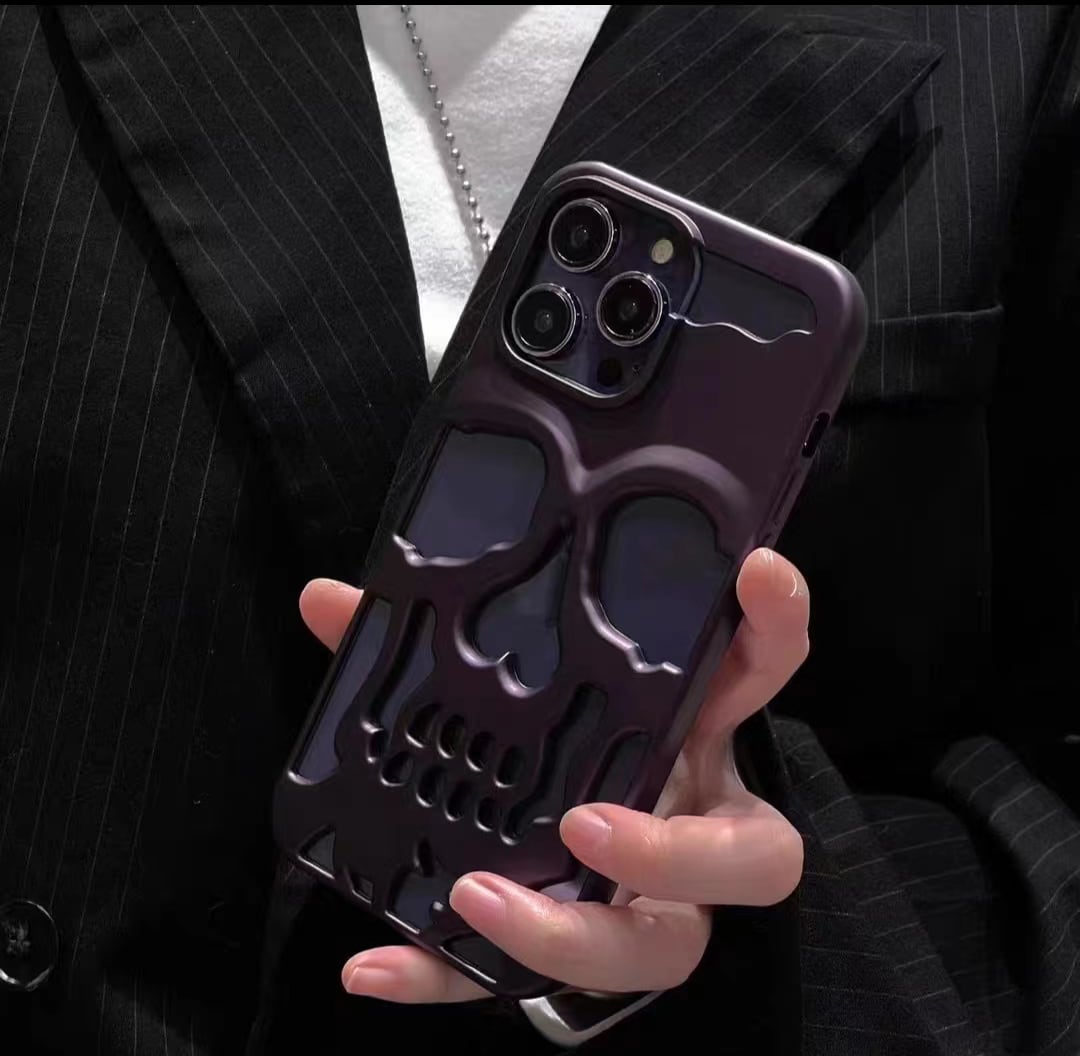 iPhone14 ProMax 13 12ケース ドクロ 透かし メタリック マット アイフォン14ケース 超個性的 ヘヴィメタル風 かっこいい 放熱性抜群◎
