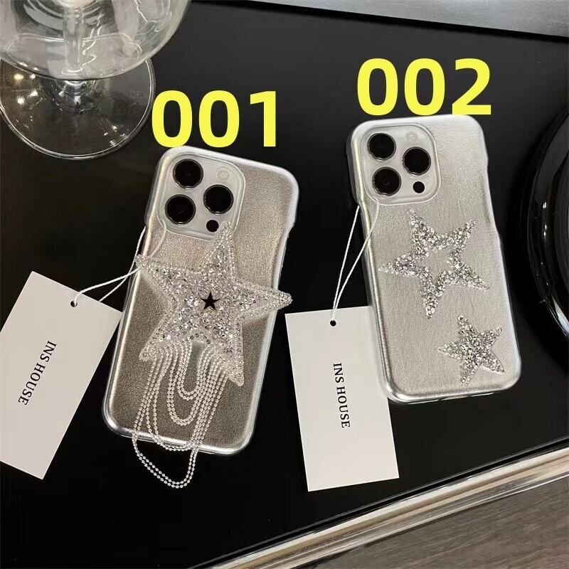 iPhone14 ProMax 13 12ケース 星 シルバー グリッター キラキラ アイフォン14ケース 立体的 ラメ 煌き おしゃれ インスタ映え★