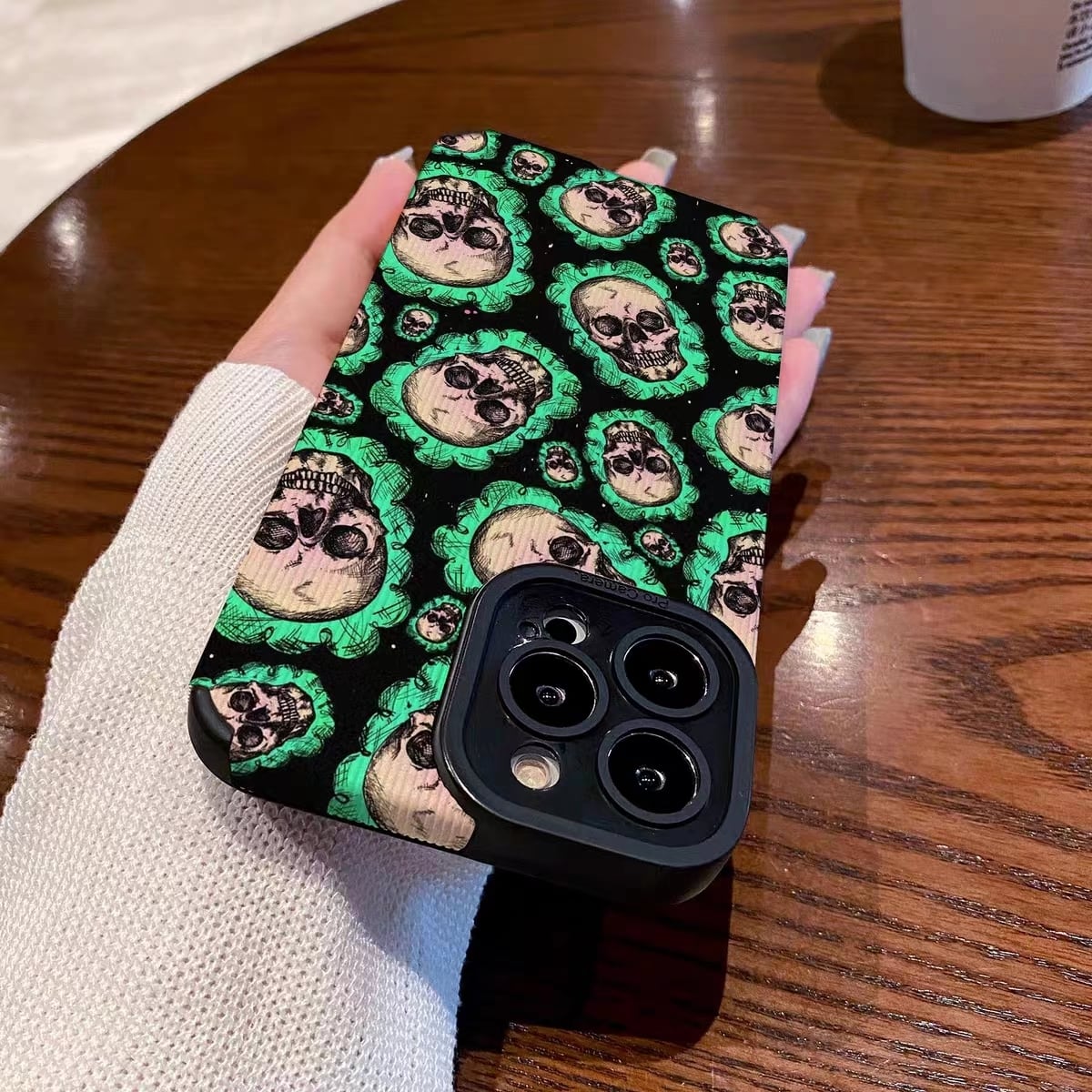 iPhone14 Pro Max 13 12ケース ドクロ 個性的 かっこいい お洒落 アイフォン14ケース 髑髏 ソフトケース グリーン おもしろ ダーク★
