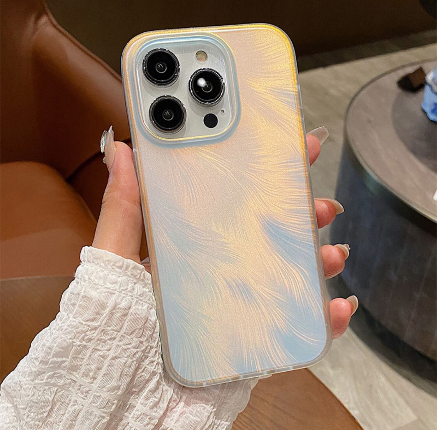 羽 iPhone15 Pro Maxケース iPhone15 15Plus 15Proカバー レーザー色 スタイリッシュ アイフォン14 13 12 Pro Maxケース オーロラ 色変化 人気スマホケース【限定発売】