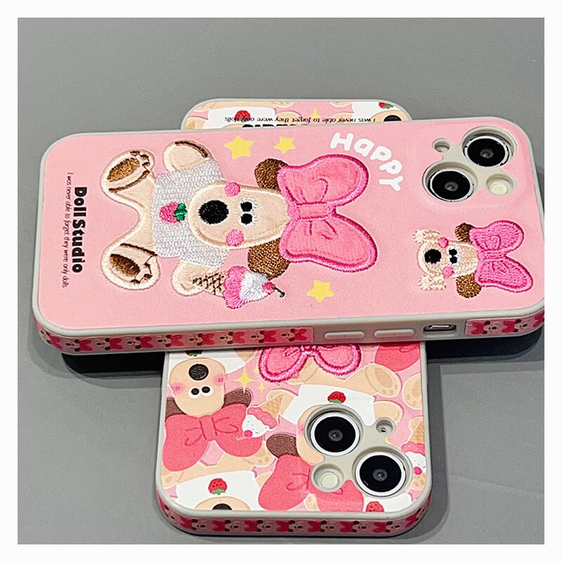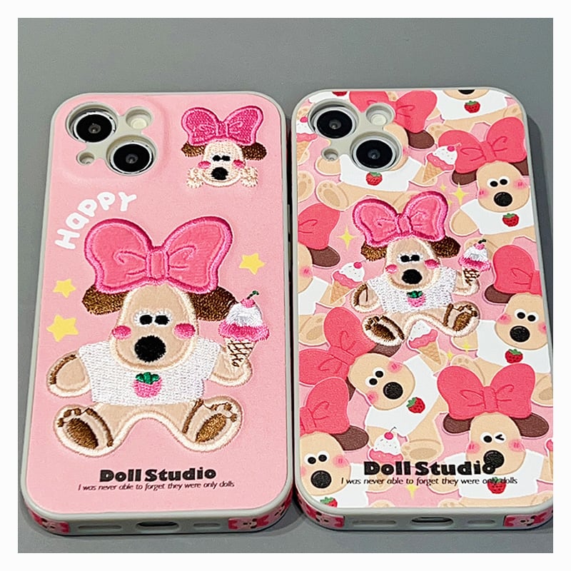 かわいいワンチャン刺しゅうのiPhoneケースです。