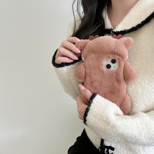 トナカイ iPhoneケース ぬいぐるみ風 iPhone15ProMax 15Pro 15ケース かわいい クリスマスプレゼント iPhone14 13 12 11 pro maxケース 暖かい スマホケース ふかふか かわいい レディース 人気アイフォンケース 冬の新品♡