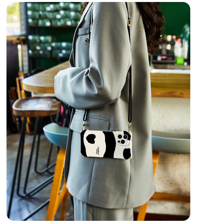 iPhoneケース ショルダーストラップ付き パンダさん iPhone15 15Pro 15ProMaxケース シリコン 耐衝撃設計 iPhone14 14Pro 14ProMaxカバー パンダデザイン かわいい iphone13 12 11 Pro Maxカバー ショルダースマホケース 人気 レディースファッション お洒落